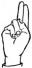 На ћирилици написано КОСТАДИН ШЕРОВИЋ састоји се из 15 слова [?]. Исписано ћириличном једноручном азбуком за глувонеме: